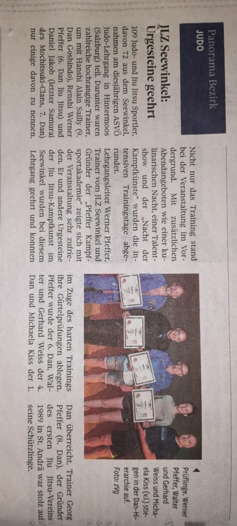 2022 Unsere Trainer Gerhard und Walter Weiss absolvierten in Hintermoos die Prüfung zum 4.Dan in Jiu Jitsu. Vorführung beim Sommerfest 2022